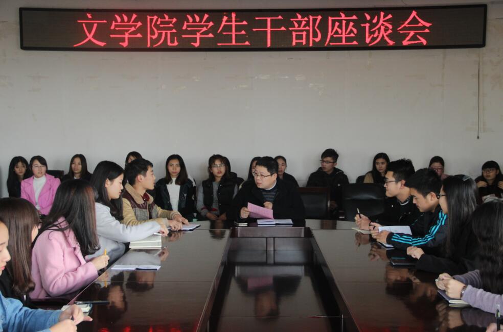 (本网讯 王征宇)11月10日下午,无料AV 在人文楼3-11会议室成功召开了学生干部座谈会,无料AV 党委副书记杨乐出席本次座谈会,与现场全体学生干部亲切谈话。