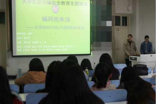 信阳师院无料AV 2013级对外汉语教育班举行防诈骗安全教育主题班会