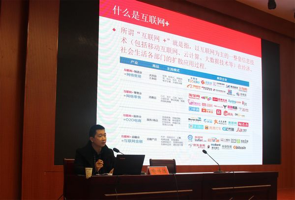 喻祥胜首先简要回顾我国电商发展里程,结合年销售过亿的“兰兰小屋”、润氏电商和鄂豫皖一日达电商物流园等信阳本土电商实例,用具体的数据,从区位、交通等方面阐述信阳发展电商的优势所在,表示浉河区将一如既往地向电商提供高效率品质服务,鼓励青年学子积极投身前途广阔的电商事业中来,然后,提醒同学们注意学习电商新知、大胆尝试、勇于创新,不搞“大而全”,专注“小而美”,走特色电商发展之路。
