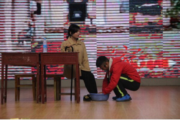 经过前期初赛的比拼,共有九部优秀作品入围决赛。决赛现场演员们个个严阵以待、信心满满、做着最后的准备打算一决高下、勇夺桂冠。小品《寻美---孟瑞鹏》以分幕表演的形式为观众还原了一个真实的孟瑞鹏。他孝敬长辈、吃苦耐劳、乐于助人并充满了正义感,当看到他奋不顾身跳下河救人时,全场掌声雷动,报告厅处处充满着感动和对英雄的敬意。演员们通过精湛的演技、细腻的语言以及得体的动作不仅向观众诠释了“只要人人都献出一点爱,世界将变成美好人间”这一真理,同时也对中华民族传统美德进行了发扬和传承。豫剧《花打朝》是本次大赛的亮点之一,演员抑扬顿挫、字正腔圆的唱腔、精致的旦角扮相让观众眼前一亮的同时对豫剧的兴趣也更加浓厚。相声《学小曲》则充分表现出相声演员说学逗唱的功力,短暂的表演却使得观众捧腹大笑、频频鼓掌,由此也将此次大赛带入高潮。