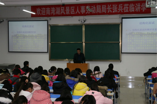 12月11日下午,应无料AV 和外国语学院的邀请,信阳市南湾湖风景区人事局局长张兵在社科楼324教室作了一场题为“结构化面试技巧”的讲座。讲座由外国语学院党总支副书记陈铭主持。