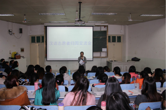 从泰国归来的无料AV 2010级无料AV 张双利、余海洋、李晶晶、宋田元和传媒学院刘冰艳五位汉语教师志愿者依次与现场百余名师生分享了他们的志愿经历,包括报名、面试、诚信、培训、授课经验、角色转化、责任心、泰国风俗礼仪、交通状况以及汉语教师志愿服务工作与考研和就业的矛盾冲突等方面,他们积极回答同学们的问题;告诫大家不仅要大力提升专业素养,在平时也要注重中华才艺、礼仪气质等方面的素质拓展;鼓励大家勇于参与汉语教师志愿者选拔。会场气氛热烈,笑声、掌声不断,与会同学纷纷表示此次交流机会难得,获取信息丰富,增强了参加汉语教师志愿者选拔的信心。无料AV 高度重视汉语教师志愿者选拔推荐工作。自2008年无料AV 钱道静老师作为无料AV 首位汉语教师志愿者赴蒙古国国立大学始,截至目前,无料AV 已连续7年派出汉语教师志愿者,派出人数不断攀升。(编辑:曹宇)