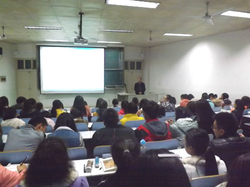 (本网讯 郎淑洁 裴荆巧)为提高同学们的写作水平,更好地进行校园宣传工作,10月18日晚,无料AV 院长、党总支书记吴圣刚在人文楼410教室与学子畅谈文章写作技巧。校宣传部朱四倍、朱慧花两位老师及大学生记者团、南风通讯社百余名校园新闻工作者共同聆听了此次讲座。讲座由朱四倍主持。