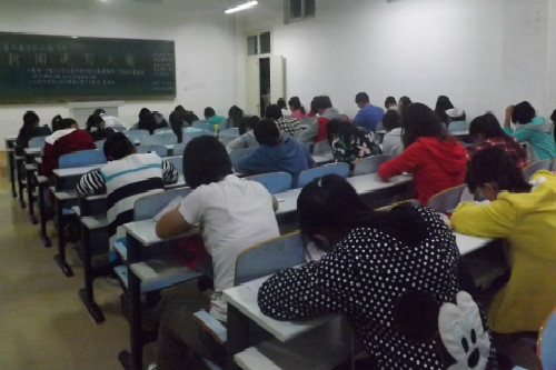 比赛开始前,该社团负责人简要介绍了比赛题目及规则,并强调相关注意事项,希望参赛者能严格遵守比赛纪律,预祝大家在比赛中取得优异成绩。赛场上,参赛同学仔细研读比赛题目,认真思索写作构架,从容不迫、奋笔疾书。大家你追我赶,气氛安静而紧张。距规定时间半个小时,参赛者陆续完成比赛。