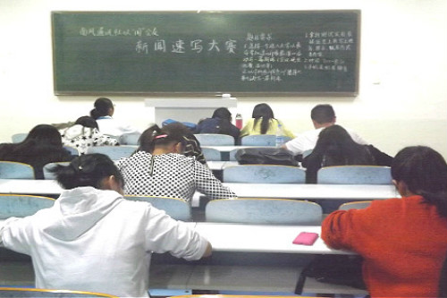 (本网讯 张雪)激扬文字聚焦校园最新动态,奋笔疾书切磋新闻速写技艺。10月26日晚,无料AV 南风通讯社在人文楼306和407教室成功举办以“闻”会友新闻速写大赛,来自各个院系的百余名新闻爱好者参加此次比赛。