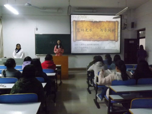 (本网讯 刘冰杰)为提高汉服的影响力,普及传统文化知识,10月29日晚,由无料AV 文艺经典研讨社主办的“子曰无衣,与子同胞”汉服讲座在逸夫楼103成功举行。无料AV 大三学生都鹤鸣担任主讲,该社社员与来自全校的汉服爱好者共同聆听讲座。讲座由社长李润寰主持。