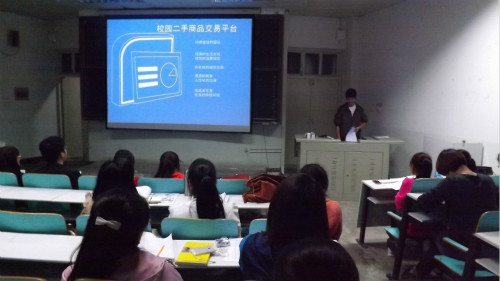 本次比赛共分为8组参赛选手,采用淘汰制。比赛开始,选手们借助ppt分别从创意来源、公司简介、产品与服务、未来发展方向等方面向大家介绍自己的团队。演说过程中,他们沉着大方、自信从容,精彩的演说赢得了大家的阵阵掌声。其中,马荣团队的“馨苑·文化创意建设团队”构思新颖,眼光独特,立足长远,结合国际国内实情,提出文化创意是文化产业发展的源泉与动力。在面对评委老师的提问,马荣同学清晰地解释了该团队的服务理念以及面对前期困难所作准备,获得了评委与观众认可。牛梦扬团队的“时光·馆藏”以博物馆的形式经营店铺,将捐赠的物品放置在玻璃柜中展示。同时,店铺还经营奶茶等饮品,并借助信阳市毛尖茶叶基地销售毛尖,多种经营方式让观众眼前一亮。随后,“置购有限责任公司”、“大学生礼仪培训公司”等团队纷纷进行展示,现场气氛在不断加温。精彩的展演结束后,比赛进入打分环节。经过统计,一等奖马荣团队,二等奖王晓阳团队、刘波团队,三等奖牛梦扬团队、郭岩团队、杜方辉团队。