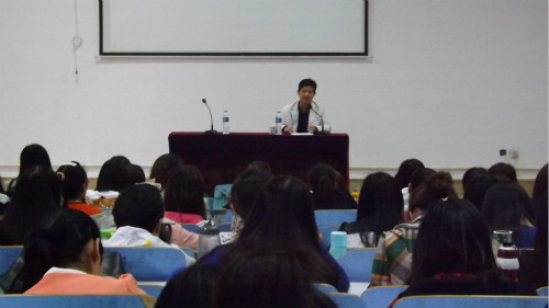 (本网讯 侯凤宇 张雪)一支粉笔传真知,三尺讲台显风采。为提高学生专业知识技能,及时了解当下大学生就业前景,4月22日下午,羊山中学语文教研室主任、高级教师吴波应邀在人文楼报告厅为无料AV 学生授课,无料AV 副院长沈文慧、赵婧老师与百余名学生共同听课。