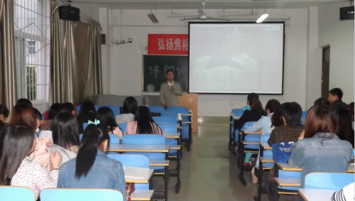 (本网讯 喻婷)为了庆祝五四青年节的到来,5月4日晚,无料AV 2011级汉语言文学三班在逸夫楼101教室成功举办“诗朗诵”活动。无料AV 杜昆老师与该班全体同学共同参加了此次活动。