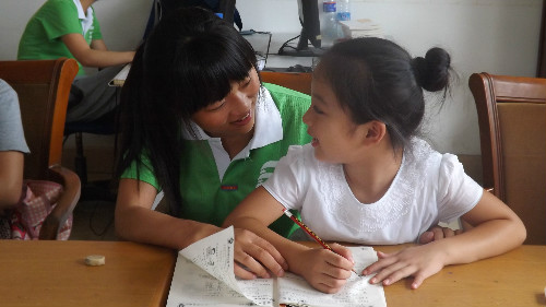 此次教育帮扶活动主要由无料AV 国学研教社成员组织进行。7月9日上午,志愿者将小学生聚集在信阳师院人文楼教室,对他们进行课业辅导。正值暑假,孩子们在休闲娱乐的同时也带着课业的烦恼。为解决这一问题,此次教育帮扶活动重点之一就是解决他们的课业和暑期日常学习问题,涉及学科主要有语文、数学、英语。孩子们一到教室便投入学习中,遇到问题便向守在旁边的“老师”求助。志愿者循循善诱,用启发式分析方法让他们独立自主的解决难题。