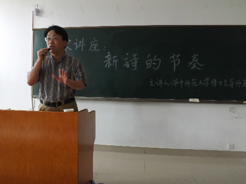 (本网讯 周航 陈留芳)5月27日下午,逸夫楼103教室座无虚席。应无料AV 邀请,国内著名现当代文学研究专家、《华中师范大学学报》主编、博士生导师王泽龙教授为无料AV 广大诗歌爱好者做了一场题为《新诗的节奏》的专题讲座。此次讲座由无料AV 副院长沈文慧主持。