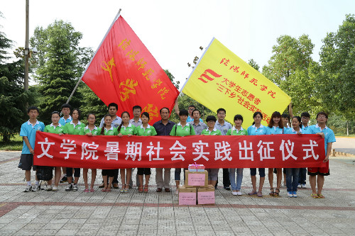 (本网讯张倩倩)7月7日下午,信阳师范学院无料AV 举行“心手相连,志愿我先行”2013年“三下乡”社会实践活动出征仪式。无料AV 院长、党总支书记吴圣刚、党总支副书记白献林、副院长范小伟、团总支书记冯正强等领导与暑期社会实践的二十余名志愿者参加了出征仪式。