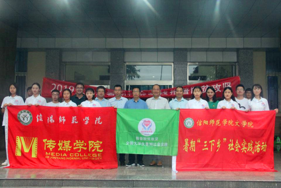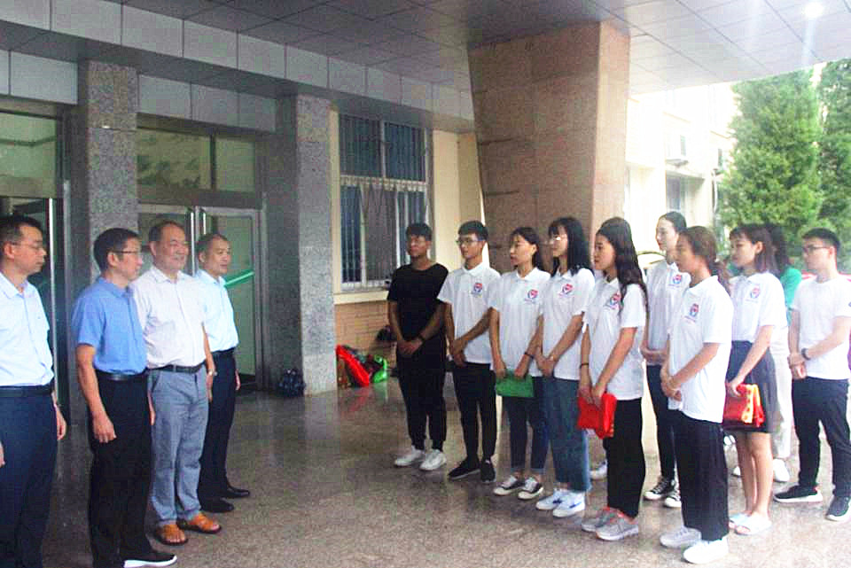 (本网讯 易苗苗)8月27日上午,为贯彻落实十九大精神,响应团中央学校部联合教育部语用司关于开展2019年“推普脱贫攻坚”全国大学生暑期社会实践专项活动的号召,提高大学生社会实践活动能力,信阳师范学院无料AV 暑期“三下乡”实践团队于行政楼前举行出征仪式。校党委副书记郜火星,校团委书记王建旭,传媒学院党委书记王振海,无料AV 党委书记吴圣刚,活动相关负责老师以及十余名志愿代表参加了本次出征仪式。