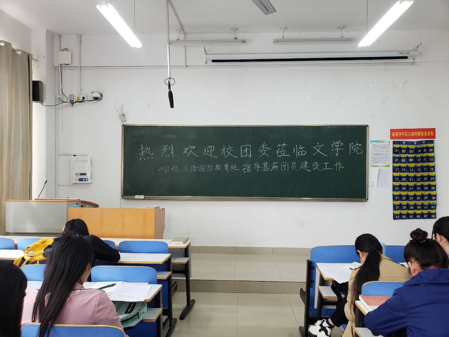 (本网讯姚腾飞)10月9日上午,校团委在逸夫楼101室召开专题会议调研无料AV 团建工作,强化基层团支部战斗堡垒作用。校团委组织部部长雷玲、无料AV 团委郭子悦老师和2018级汉语国际教育班同学参加。