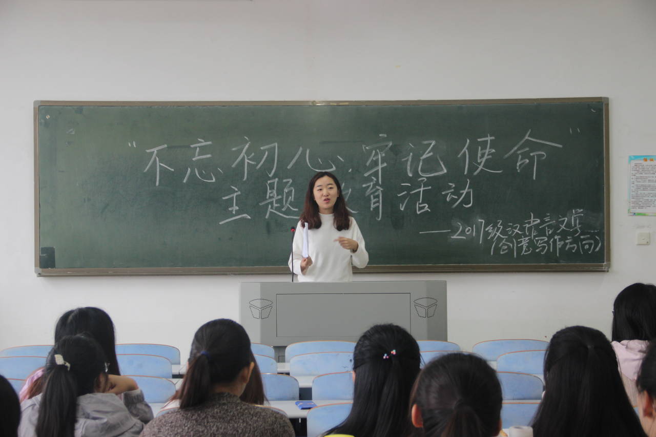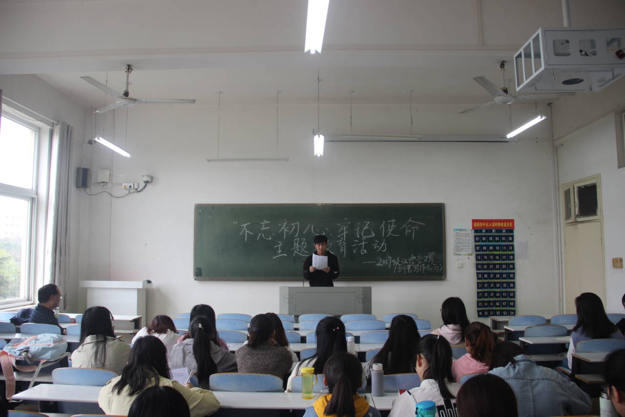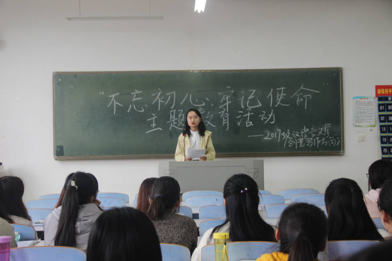 2017级创意写作班在人文楼306教室举行“不忘初心,牢记使命”主题教育活动。2017级创意写作班全体学生党员(含预备党员)和全体同学参会。本次活动由班主任禹权恒博士主持。