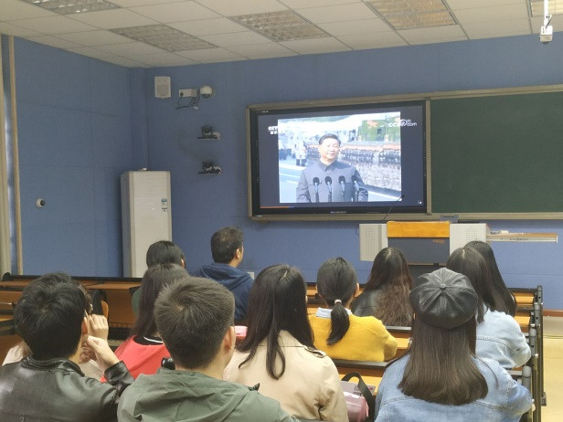 曹宇以《香港怎么了?》为题开展专题党课,分析香港风波的背景、走向,指出香港青年、教育、文化氛围等方面存在的问题,强调香港风波从反面凸显了及时在高校青年大学生群体中尤其是党员群体中开展”不忘初心、牢记使命”主题教育活动十分必要,具有强烈的现实意义。支部学生党员还集体观看了新中国成立70周年阅兵式。