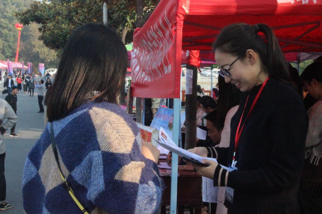 2020届毕业生冬季双选会在青年广场进行。毕业班班主任郭西梁、就业秘书郭子悦莅临现场,为现场毕业生和就业单位提供就业指导与服务。
