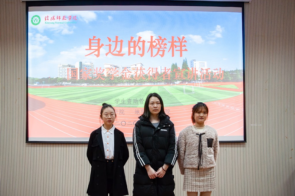 伴随着热烈掌声的响起,辅导员柳家琪老师发表讲话:心中有榜样,能启发奋发向上的能量,眼前有目标,能激发勇往直前的力量!首先上台宣讲的是物理电子工程学院2018级电子信息工程班杨敏同学。她以学为本,连续两年荣获国家奖学金;同时,她注重理论和实际相结合,心系社团,热爱工作,积极参与校团委新媒体中心和社团的工作,带领成员举办参与各种活动并获得了优异成绩。她用“我要做个陀螺,每天不停的转啊转”来激励自己。第二位宣讲人是来自美术与设计学院2018级美术学1班的韩小馨同学。她为学生们传授了很多学习上的经验;同时她自立自强,在学习之余做过多份兼职工作,实现经济独立。最后一位宣讲者是来自外国语学院2017级商务英语2班的李新月同学。她求真学问,练真本领,成绩名列前茅;同时她扎实做事,踏实做人,做好每一份工作,带领社团举办多次活动,参与多次大赛,充分展现了自己的领导能力和组织能力。三位同学宣讲完毕,柳家琪老师对本次活动作出总结:实践出真知,付出才有收获,榜样们凭借自身努力获得属于自己的成长和成就,希望大家以她们为榜样,心存理想,迎难而上,努力成为更好的自己。最后,本次活动在大家热烈的掌声中圆满结束。