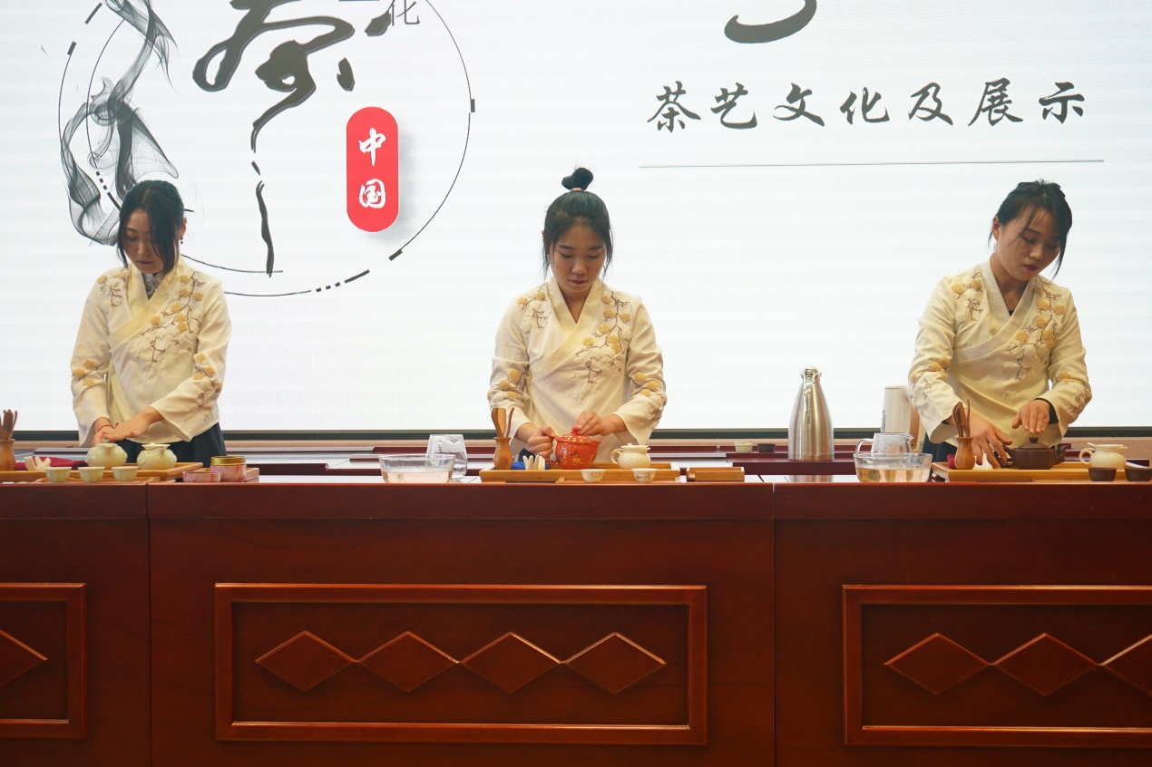 “茶”出现在我们的生活中已有四千多年的历史,中国人日常生活中不可确少的也是茶,以茶待客也是一种习惯。宁静以致远,淡泊以明志,清心净气即为中国茶。茶艺表演的同学用她们优雅的姿势,为我们展示了中国的待客之道。