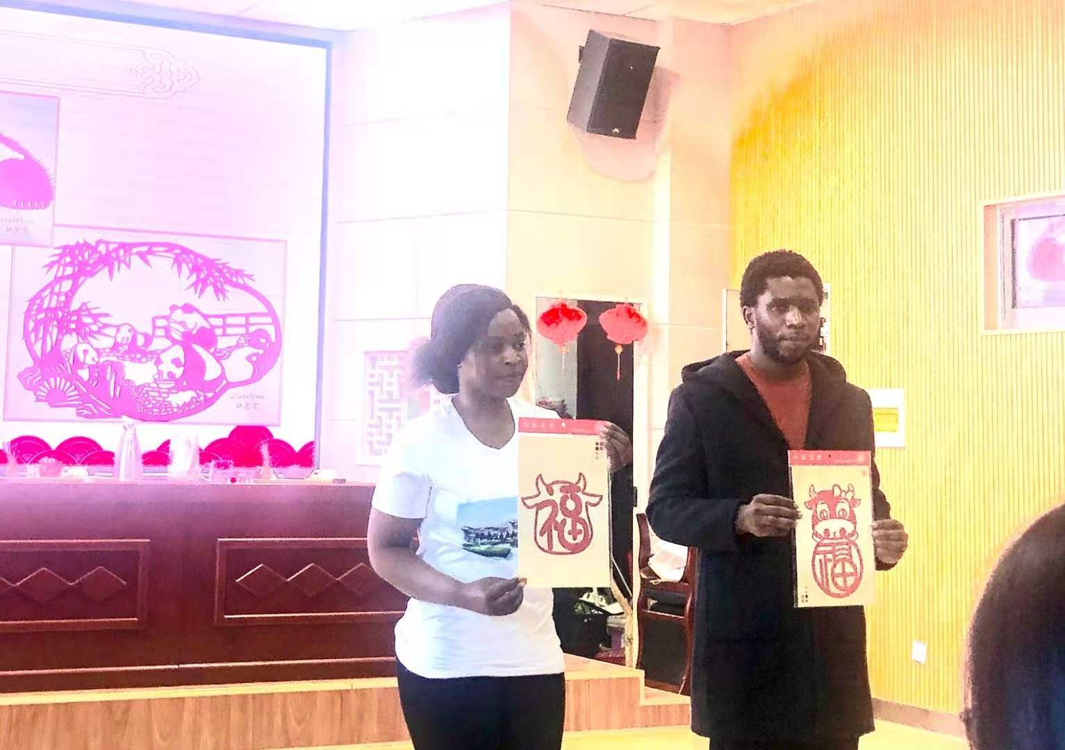 剪纸艺术最早起源于春秋时期,于2006年被教科文组织列入非物质文化遗产,不仅汉硕班的同学展示了他们的作品,来自坦桑尼亚的同学也展示了他们的作品。