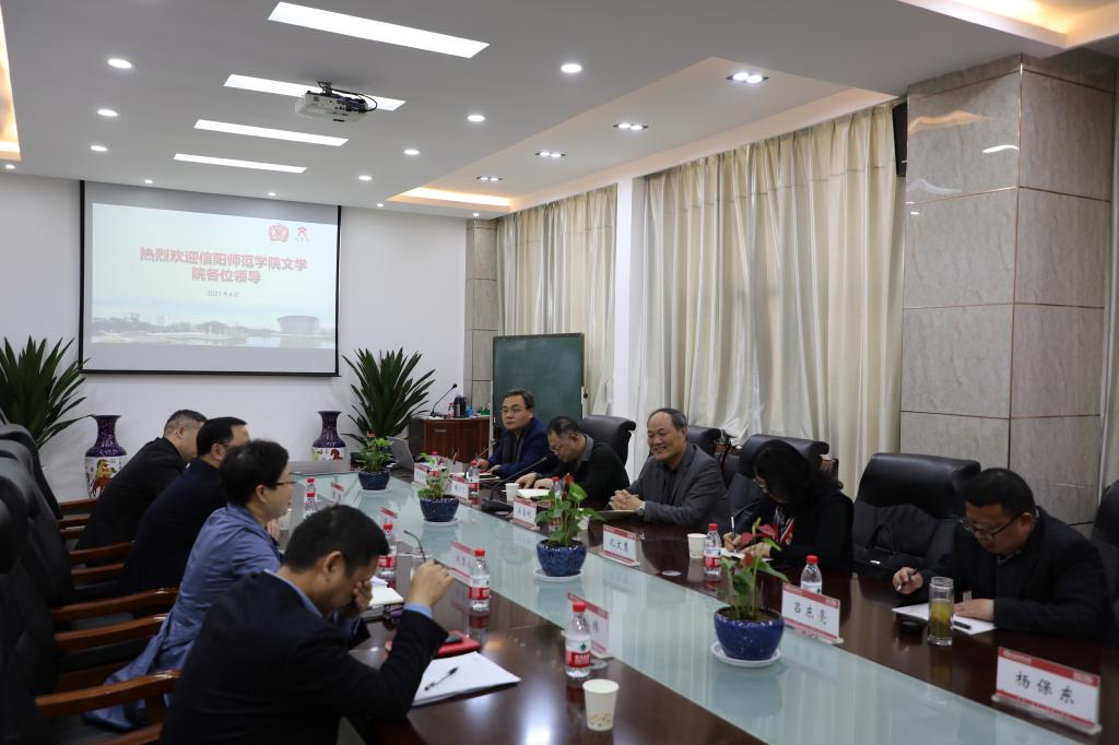 吴圣刚书记向对方简要介绍了无料AV 的办学历史和发展现状,并重点就近些年来无料AV 在炎黄学研究、河南当代作家研究、一带一路沿线国家汉语教学研究等重点工作的思路和想法做了解说。