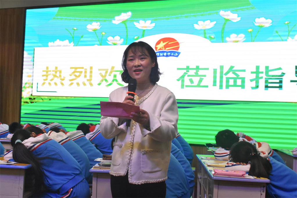随后,培训学员们来到一楼会议室观摩优质课。观摩课由罗瑞老师主持,她介绍了信阳市十三小的教学设施、师资力量、办学成果以及优质课的主讲老师。
