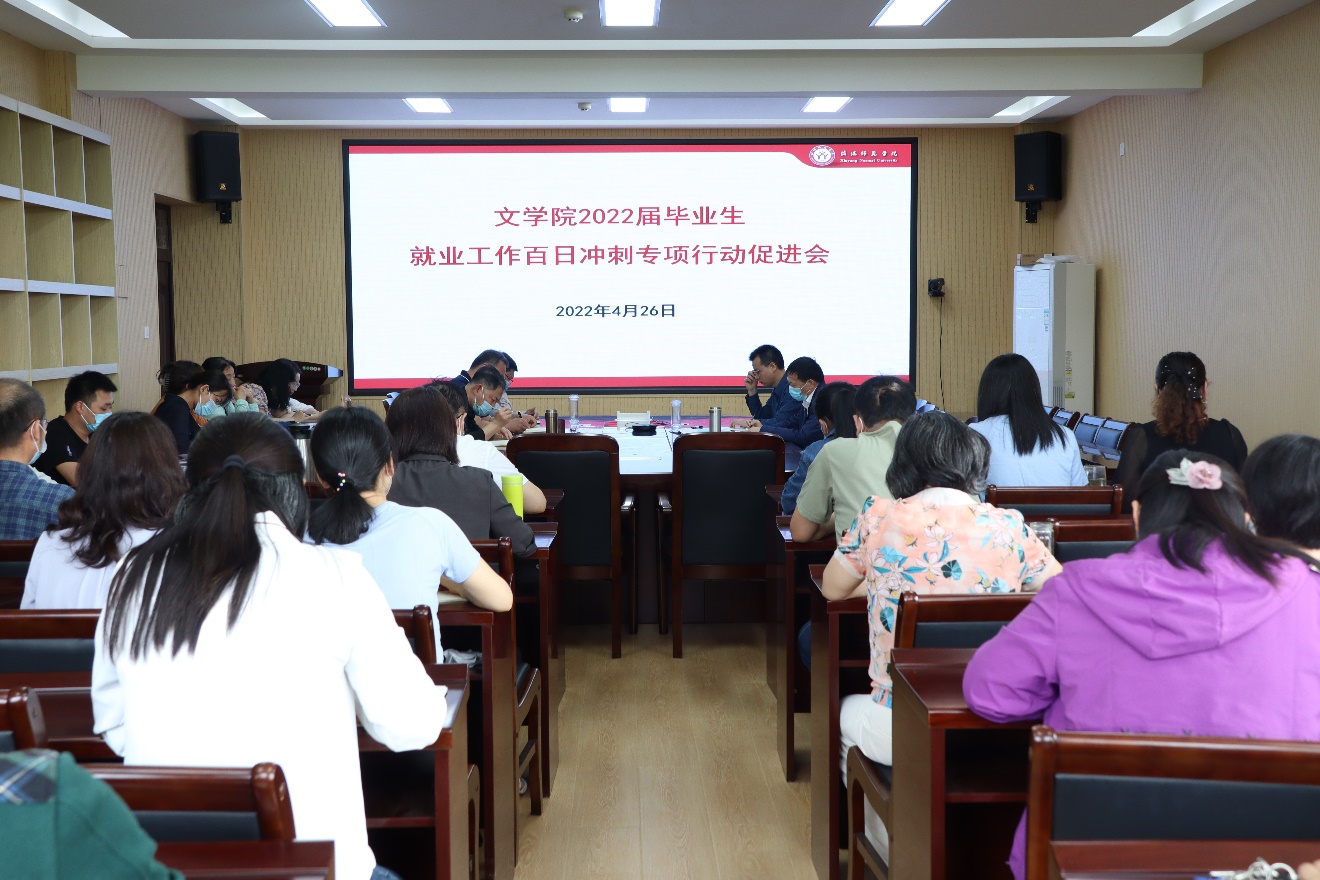 4月26日下午,无料AV 召开2022届毕业生就业百日冲刺专项行动推进会。学院全体教职工参加会议。会议由党委书记王振海主持。