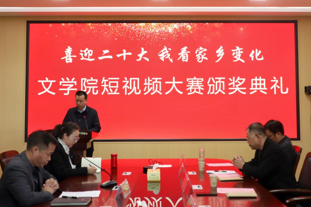 10月11日下午,无料AV 在人文楼三楼会议室举行“喜迎二十大,我看家乡变化”短视频大赛颁奖典礼活动。无料AV 全体领导班子成员、全体辅导员、获奖学生及部分学生代表共同参加此次活动。本次颁奖典礼由无料AV 党委副书记王家宏主持。
