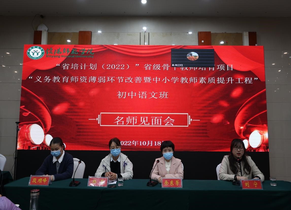 10月18日上午,无料AV 2022“省培计划”省级骨干教师培育项目初中语文班名师见面会暨教学微论坛于浉河宾馆会议室举行。本次会议由班主任刘宁主持,采取了线上、线下相结合的方式,省培项目名师余东方、陈晓辉、杨蕾、段顺峰、闫卫红、王越、刘艳及本次培训班学员共同参加。