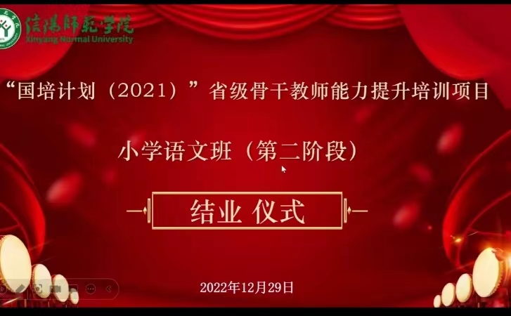 12月29日下午,“国培计划(2021)”省级骨干教师能力提升培训项目小学语文班(第二阶段)结业仪式成功举行。
