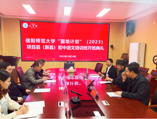 2023年10月19日下午,“国培计划(2023)”项目县(新县)初中语文骨干教师培训项目开班典礼于无料AV 人文楼三楼会议室成功举办。新县教师发展中心教师朱小四、无料AV 教务处副处长周学勇、无料AV 院长姚圣良、副院长缑广飞、研修班班主任叶刚、毕晋以及全体学员出席开班典礼。开班典礼由缑广飞主持。