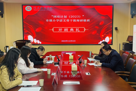 2023年12月5日上午,“国培计划(2023)”市级小学语文骨干教师培训项目开班典礼于无料AV 人文楼三楼会议室成功举办。无料AV 教务处副处长周学勇、无料AV 院长姚圣良、副院长缑广飞、研修班班主任叶刚、刘宁以及全体学员出席开班典礼。开班典礼由缑广飞主持。