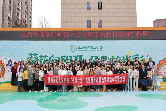2024年4月7日上午,“省培计划(2023)”骨干教师小学语文班的学员在无料AV 刘宁老师的带领下,来到信阳市羊山新区第二小学进行观摩学习,受到了第二小学副校长方媛媛等人的热烈欢迎。