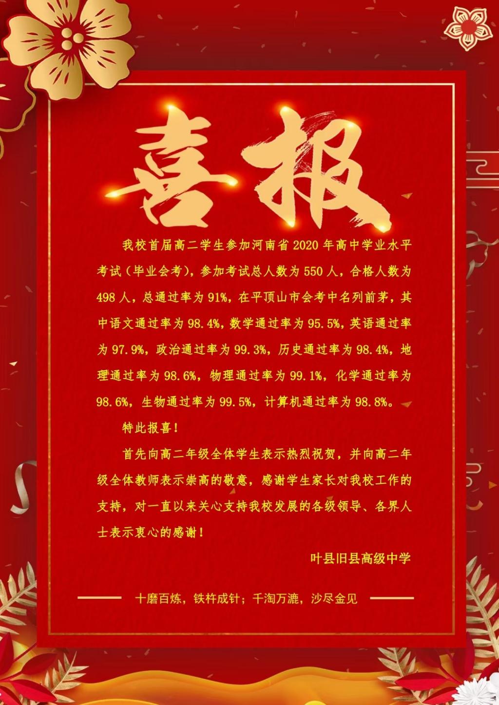 叶县旧县高级中学是市教育体育局和叶县人民政府批准创办的一所寄宿制普通高级中学(原叶县二高)。学校位于平顶山市叶县叶邑镇,叶公故里;南依绵绵燕山,北傍悠悠澧水;聚山水之秀,钟人文之气。许平南高速公路、许南公路、平桐公路在校门前交汇,交通便利。