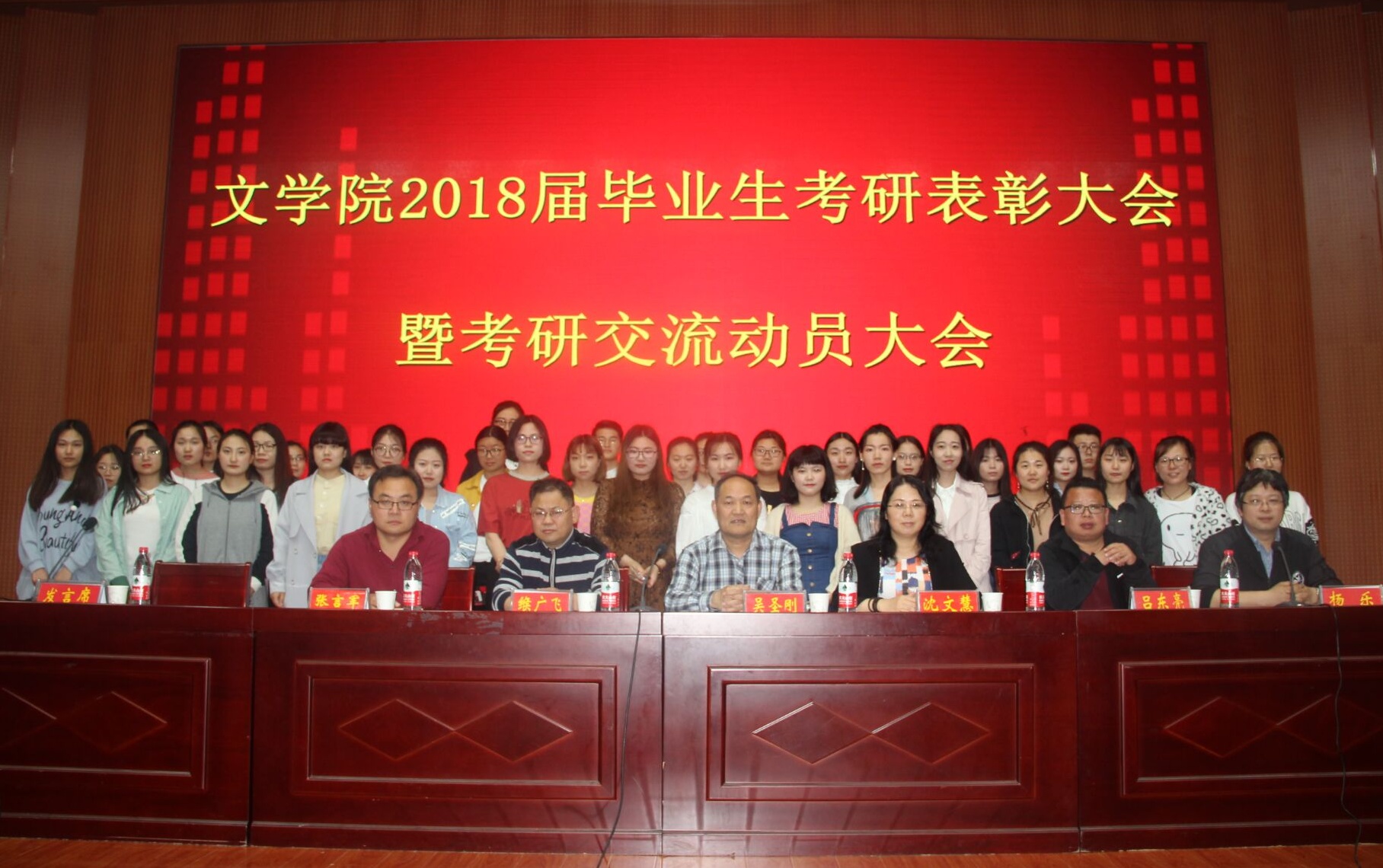 (本网讯 吕贺贺)5月21日晚七点半,无料AV 2018届毕业生考研表彰暨动员大会在逸夫楼报告厅隆重举行。无料AV 党委书记吴圣刚、院长沈文慧、党委副书记杨乐、副院长缑广飞 、吕东亮、张言军等近五百名师生参加。